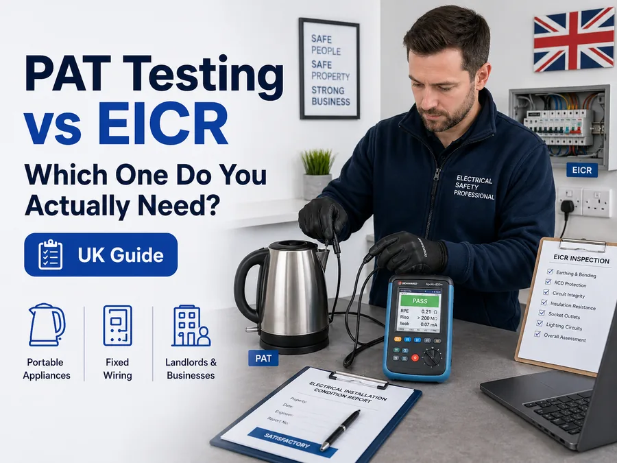 PAT testing and EICR (Electrical Installation Condition Report) testing are often confused as the same thing. They're not. They test different things, follow different standards, and have different purposes.